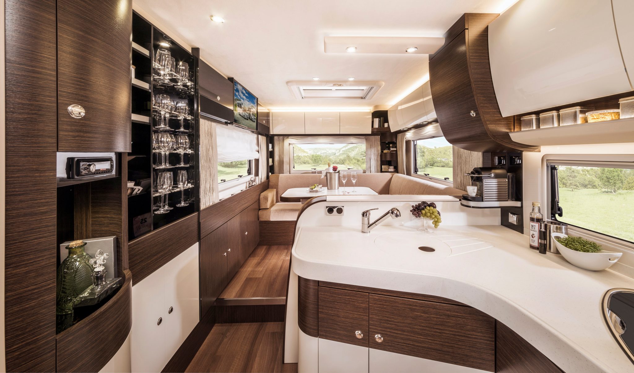 Das intelligente Innenraumkonzept des Concordes hält Funktionalität und Komfort in perfekter Balance. Ein klares Bekenntnis zu Qualität und Funktion ist auch die Küche, Apothekerauszüge, Schubläden mit Servo- Soft- Einzug, ein intelligente Abfallentsorgungssystem und die Mineralstoff- Küchenarbeitsplatte mit ein geformtem Edelstahl- Spülbecken setzen bei Raumnutzen, Design und Bedienbarkeit in dieser Klasse Maßstäbe.